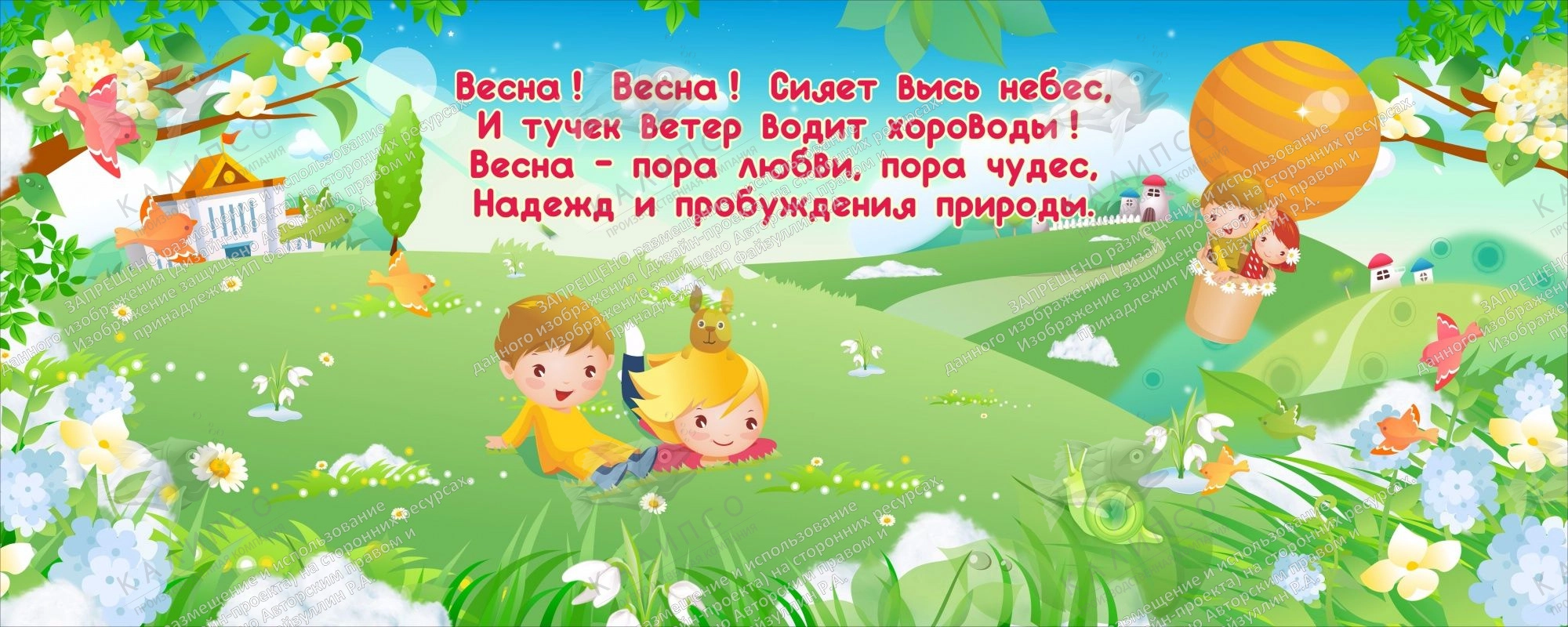 Такой баннер прекрасно смотрится в любом интерьере помещения и привлекает внимание детей и взрослых. Детям, как правило, нравятся яркие краски. Пусть каждый день в вашем детском саду будет украшен таким оригинальным и красивым решением. Баннер приятный на ощупь, за ним очень легко ухаживать, так как не требует специальных средств для уборки. Отличное решение для каждого детского сада!