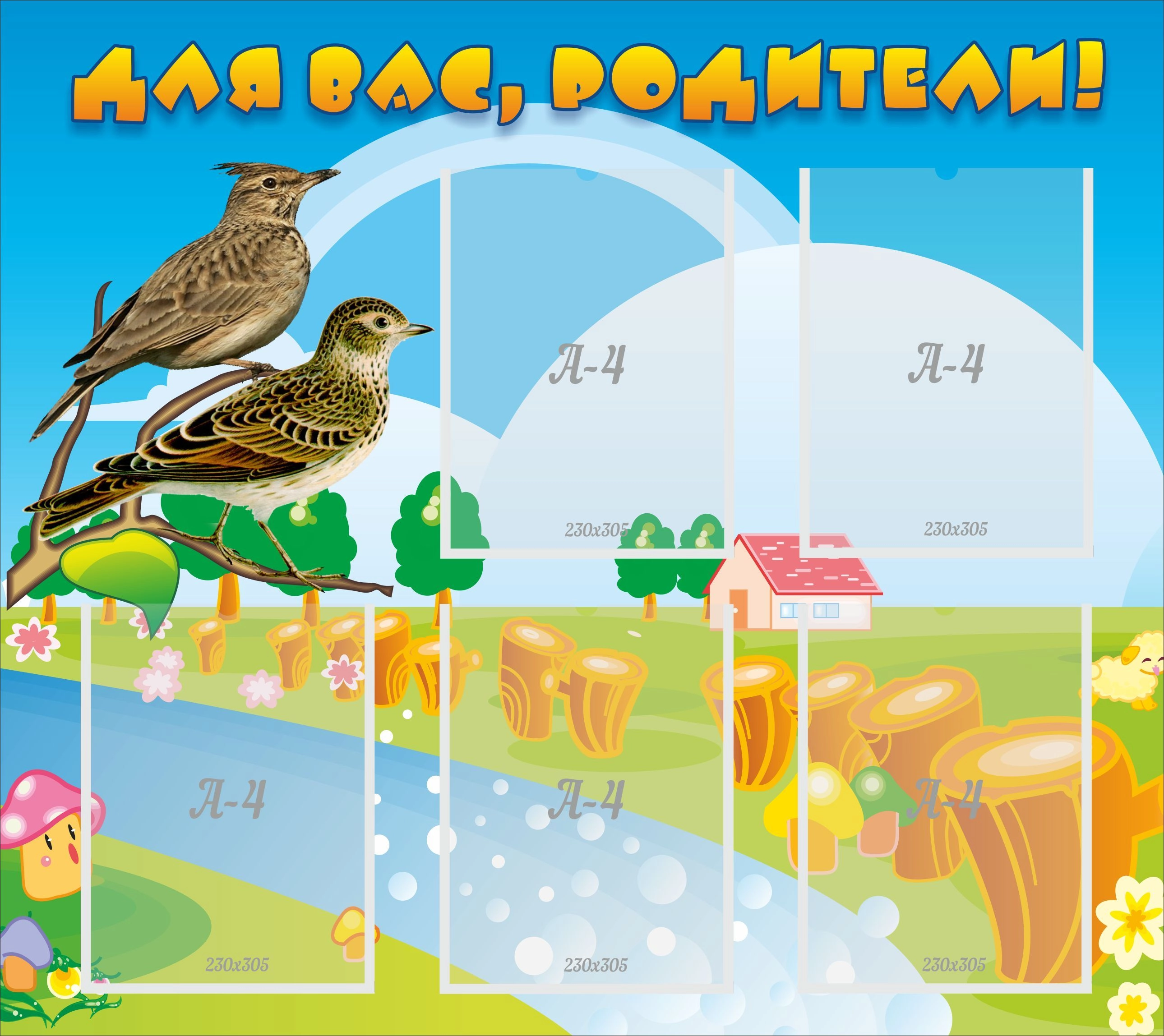 Стенд для родителей не должен отличать по своему стилевому и цветовому решению от других стендов. Потому что в детском саду все должно быть выдержано в общем детском стиле, с яркими красками, интересными рисунками, и привлекательными картинками. И информационный стенд не должен быть исключением. Представленный сделан по всем стандартам качества, из прочного материала, который должно прослужит и будет радовать глаза не только сотрудников сада, но и родителей детей. Практичные карманы для информации позволяют помещать любые объявления в удобное время. Это отличное организационное решение для любого сада. Стенд может быть изготовлен в размере 0,75х0,8 м