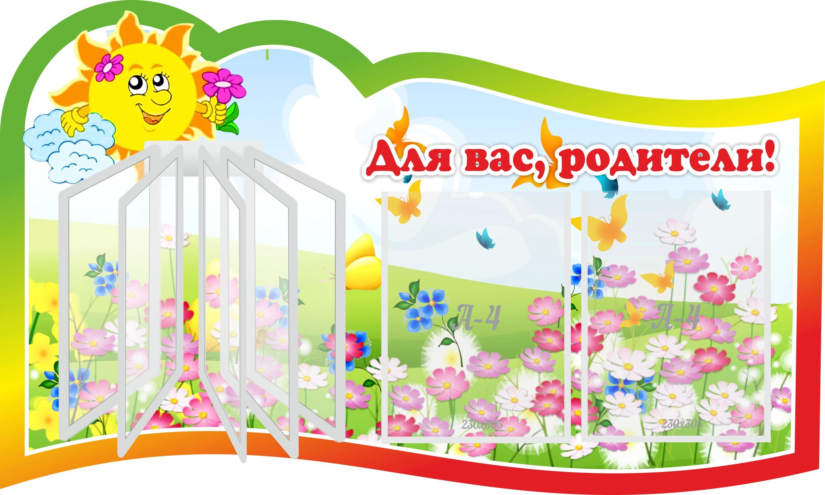 Стенд "Для вас родители!" с перекидной системой на 5 карманов А4, резной арт. ДС-0882