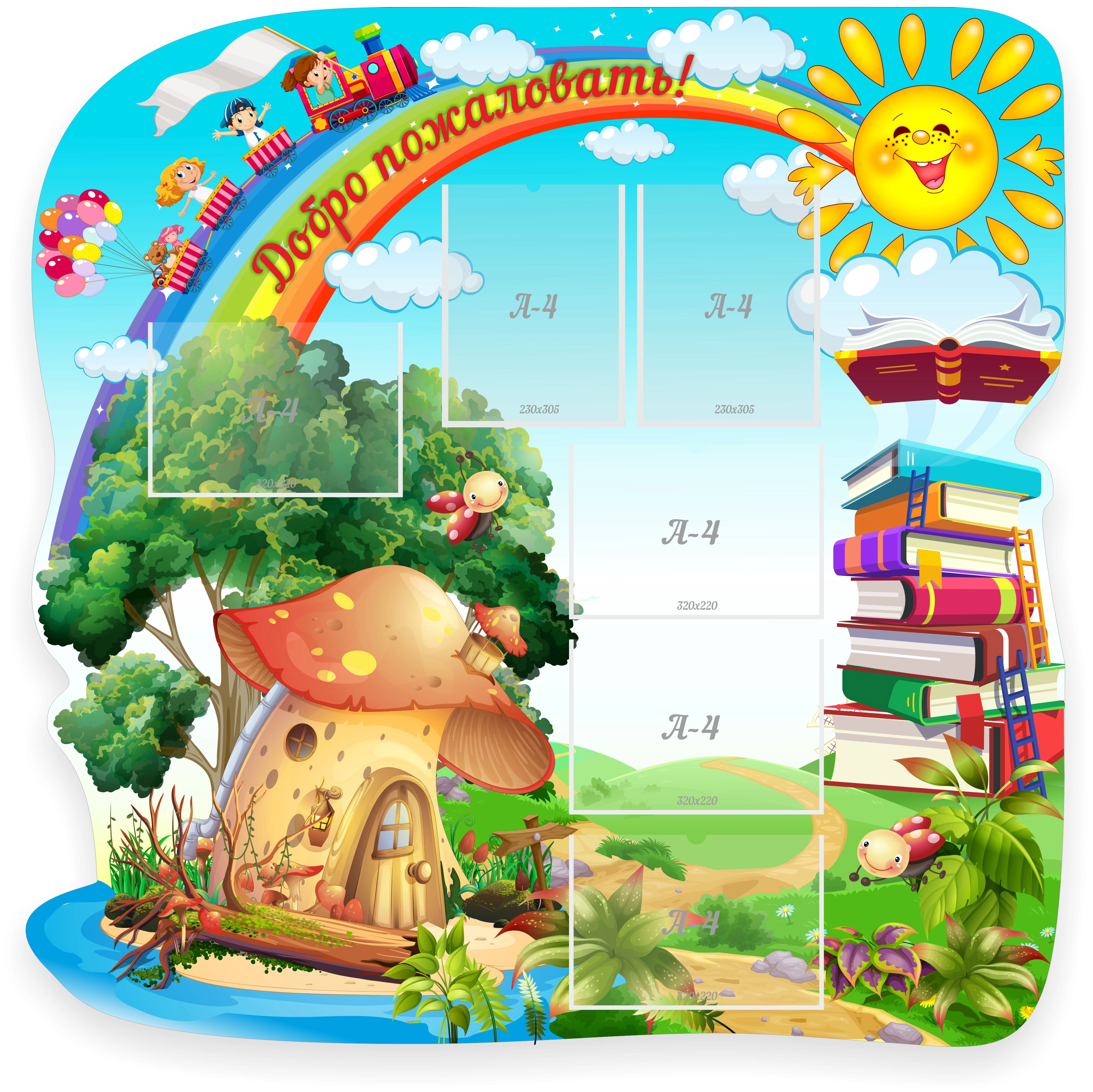 Стенд "Добро пожаловать!" с 6 карманами, резной арт. ДС-01192
