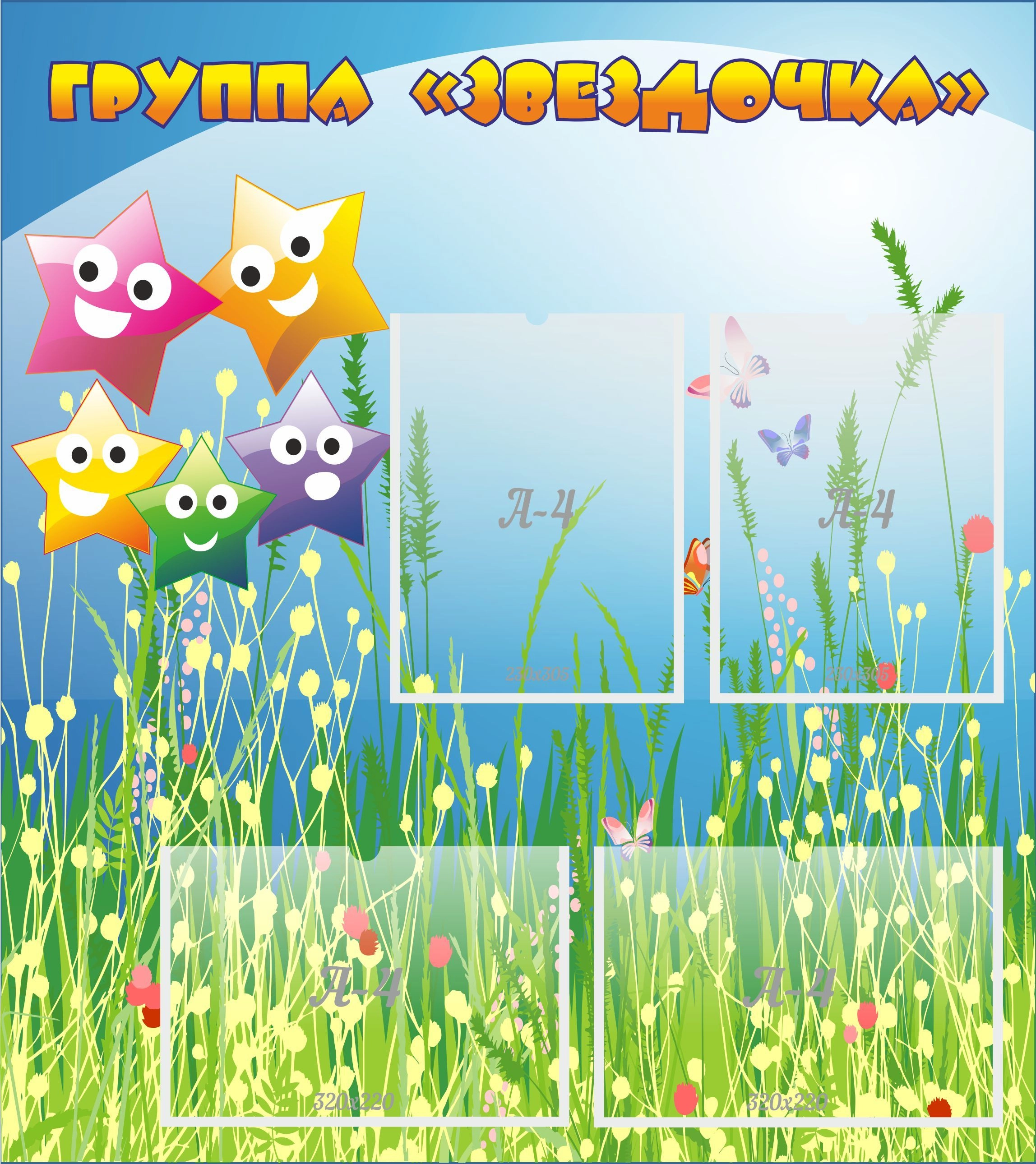Стенд "Группа Звездочки" с 4 карманами арт. ДС-0229