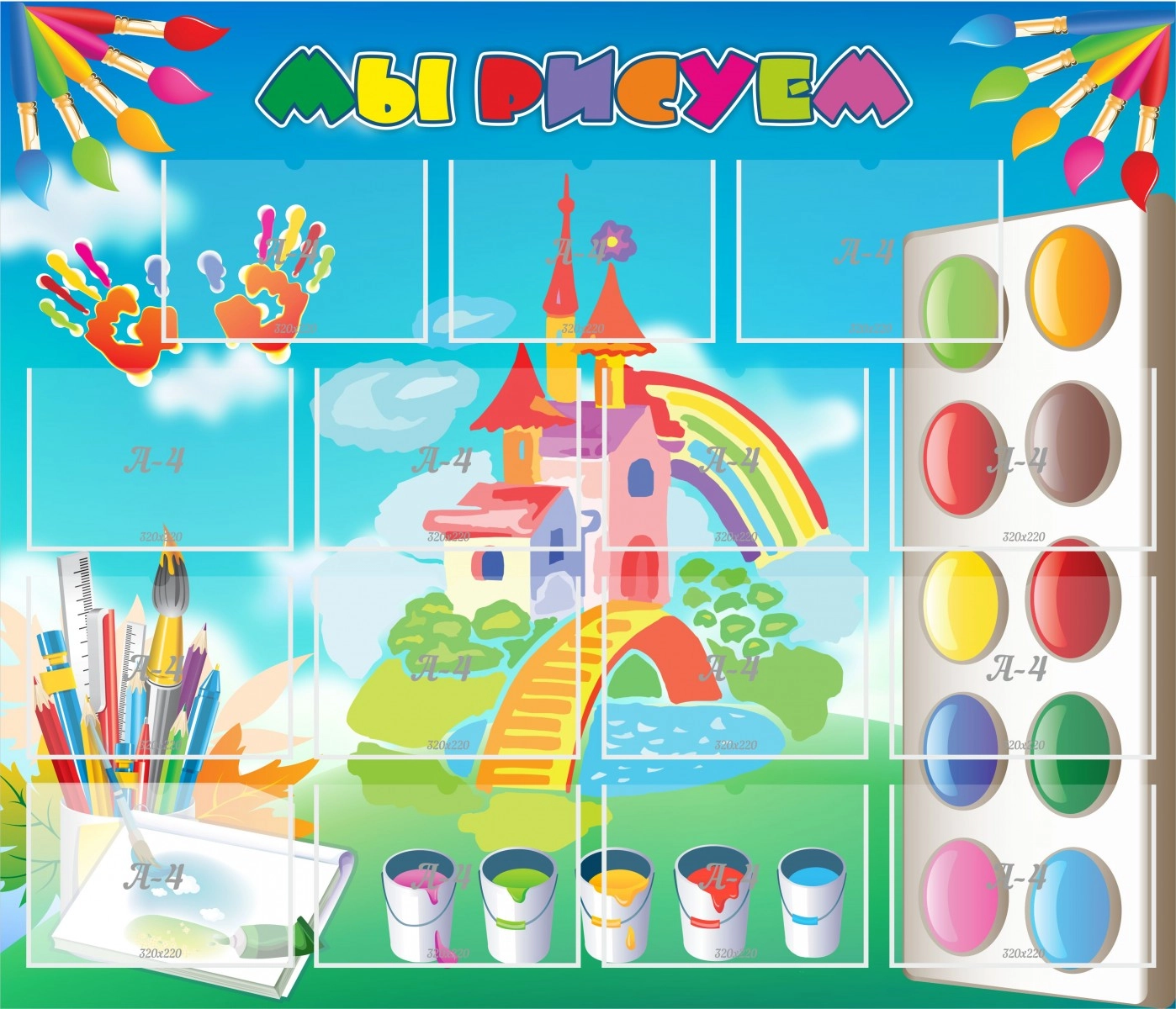 Пусть все видят, как мы рисуем, творчество нужно только поощрять, и желание делиться своими рисунками развивать! Данный стенд станет украшением вашего детского сада, особенно когда наполнится детскими рисунками!