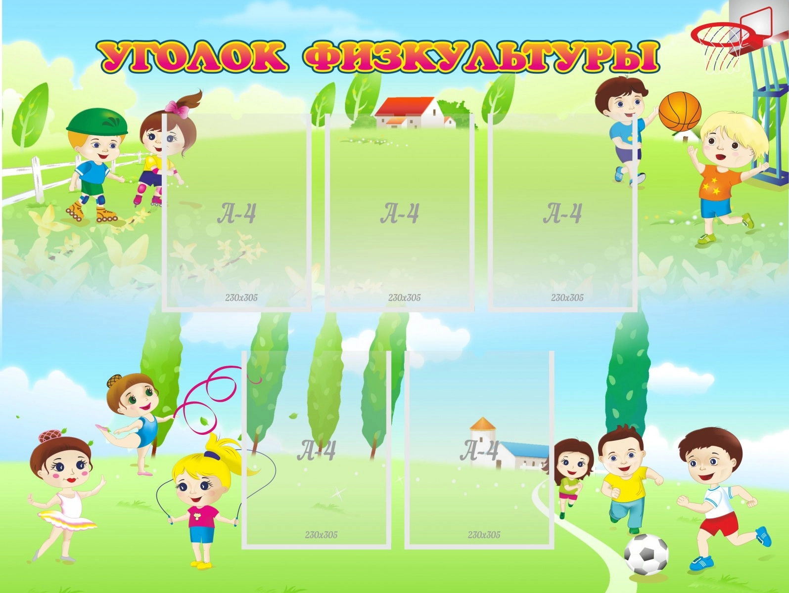 Здоровый образ жизни — это обязательно! Особенно в детских садах, где малыши впитывают всю информацию. И стенд в виде уголка физкультуры отличное решение для привлечения внимания ребят, для помещения объявлений о соревнованиях и конкурсах, прекрасная идея, чтобы украсить физкультурный зал.