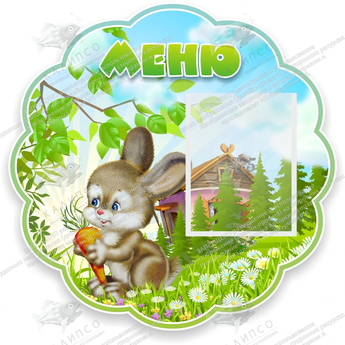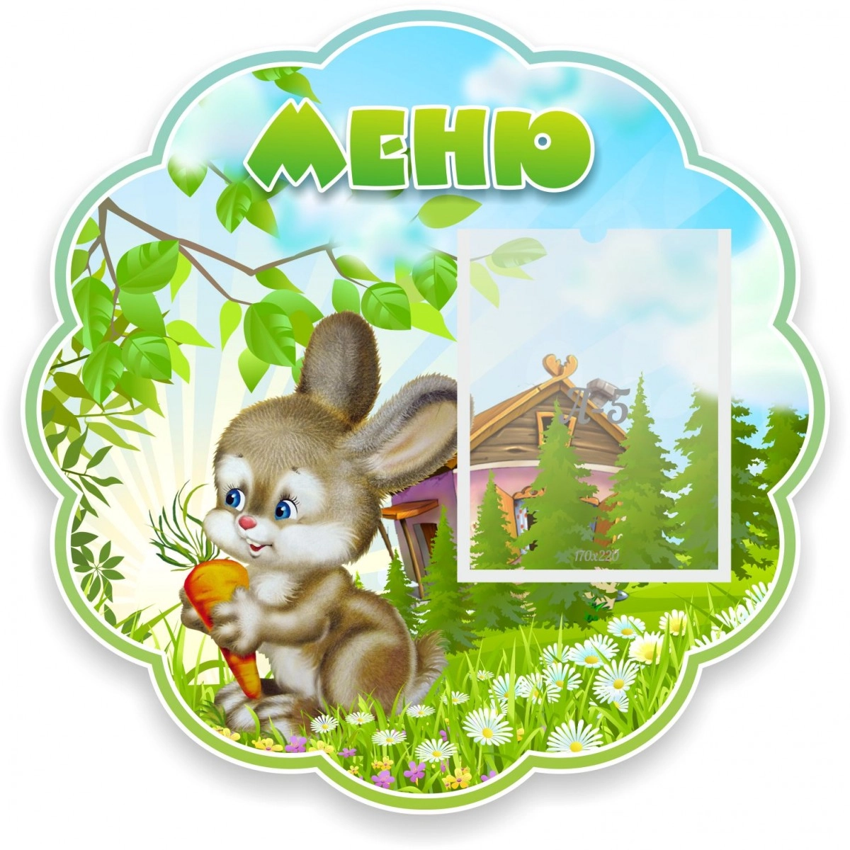 Стенд "Меню Зайчонок", резной арт. ДС-0553