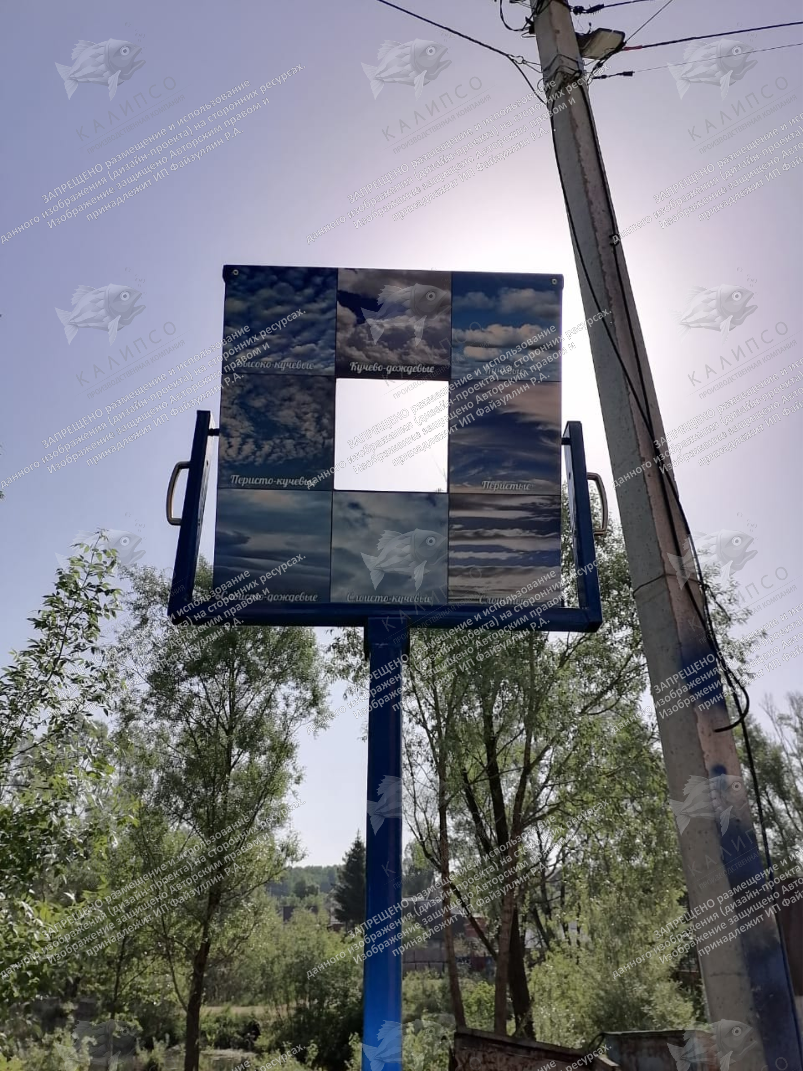 Каркас выполнен из стальной профильной трубы 40х60х3 мм, ножка из стальной профильной трубы 40х60х3 мм, вращающаяся часть - стальная профильная труба 20х20х2 мм. Панель - композит з мм с полноцветной печатью с защитной ламинацией. Порошковая покраска