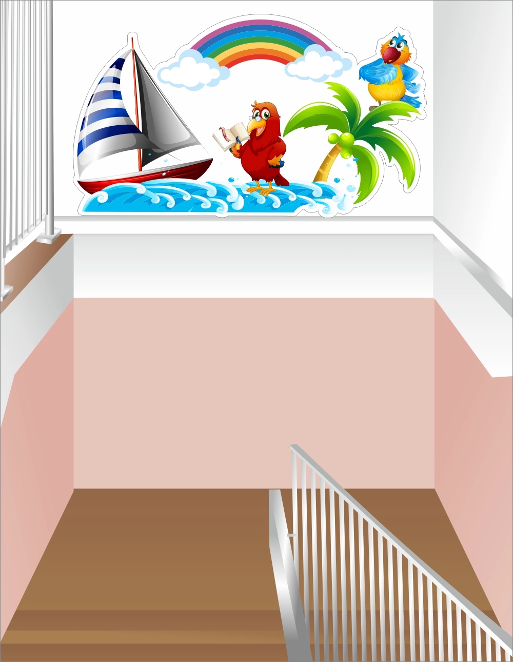 Стенд "Попугайчики" оформление лестничного пролета арт. ДС-2505