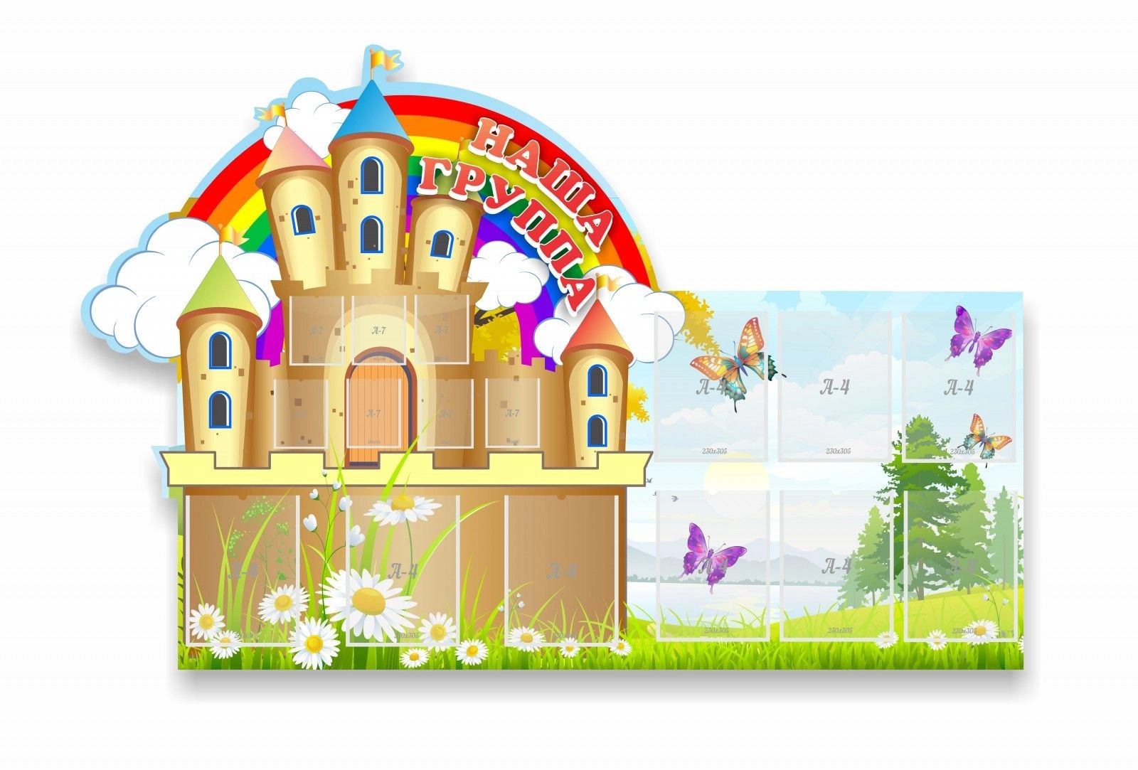 Пластик ПВХ 3 мм, пленка с фотопечатью 720 dpi, ламинирующая пленка. Карманы - ПЭТ 0,5 мм, крепление на двусторонний скотч.