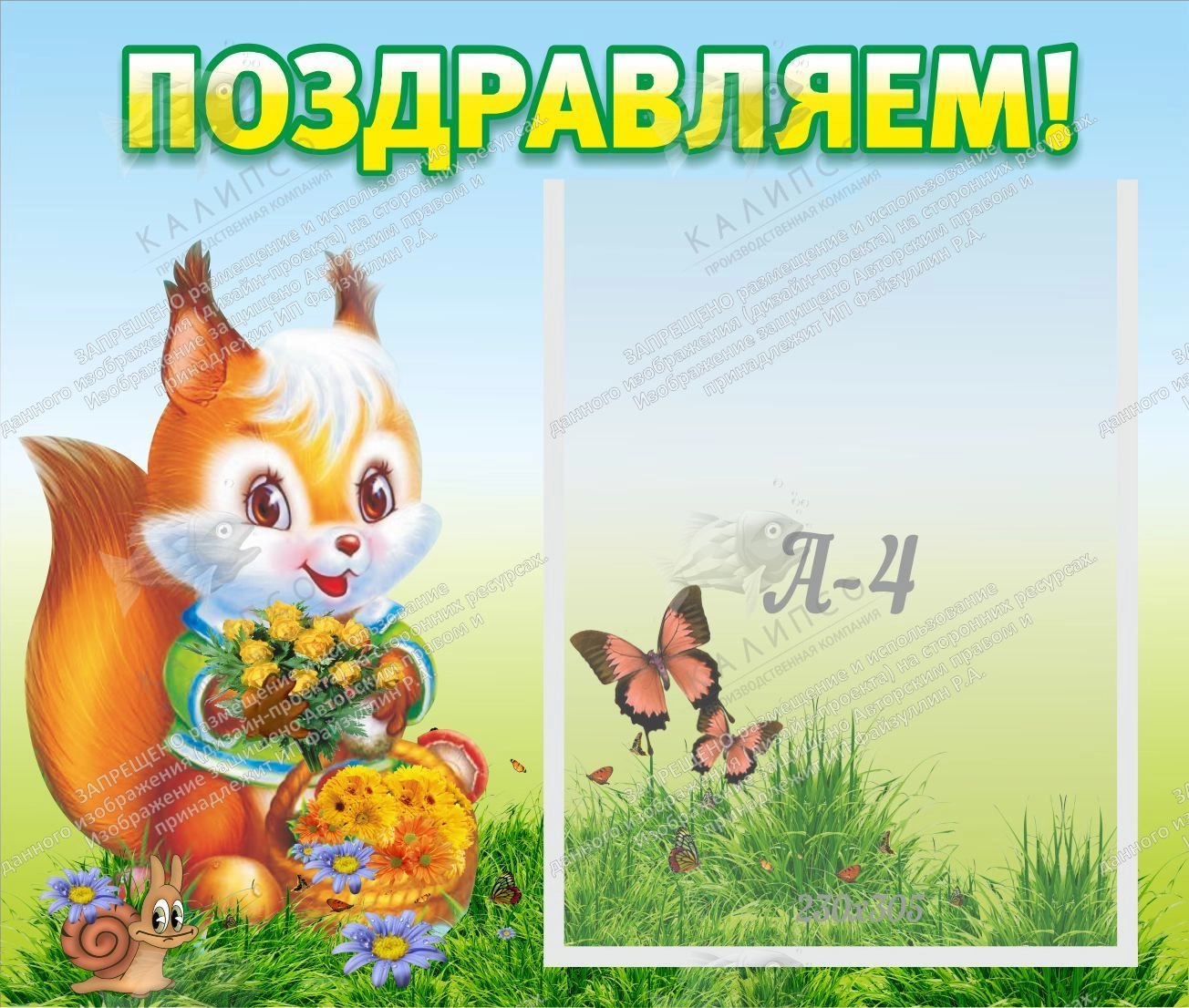 Скоро Новый год, как же поздравить детей и их родителей с праздником? Ответ на этот вопрос знает смышленая белочка. Она даже подготовила красивую корзину с цветами в качестве подарка. Маленькие непоседы найдут на картинке порхающих бабочек, маленькую улитку и лиловые цветы. Информационный карман прозрачный, выполненный из прочного пластика. Имеет скошенный верхний правый угол для облегчения процесса смены листов. Название стенда оформлено заглавными буквами желтого цвета на фоне голубого безоблачного неба. Наши специалисты для изготовления стенда используют материалы самого высокого качества.