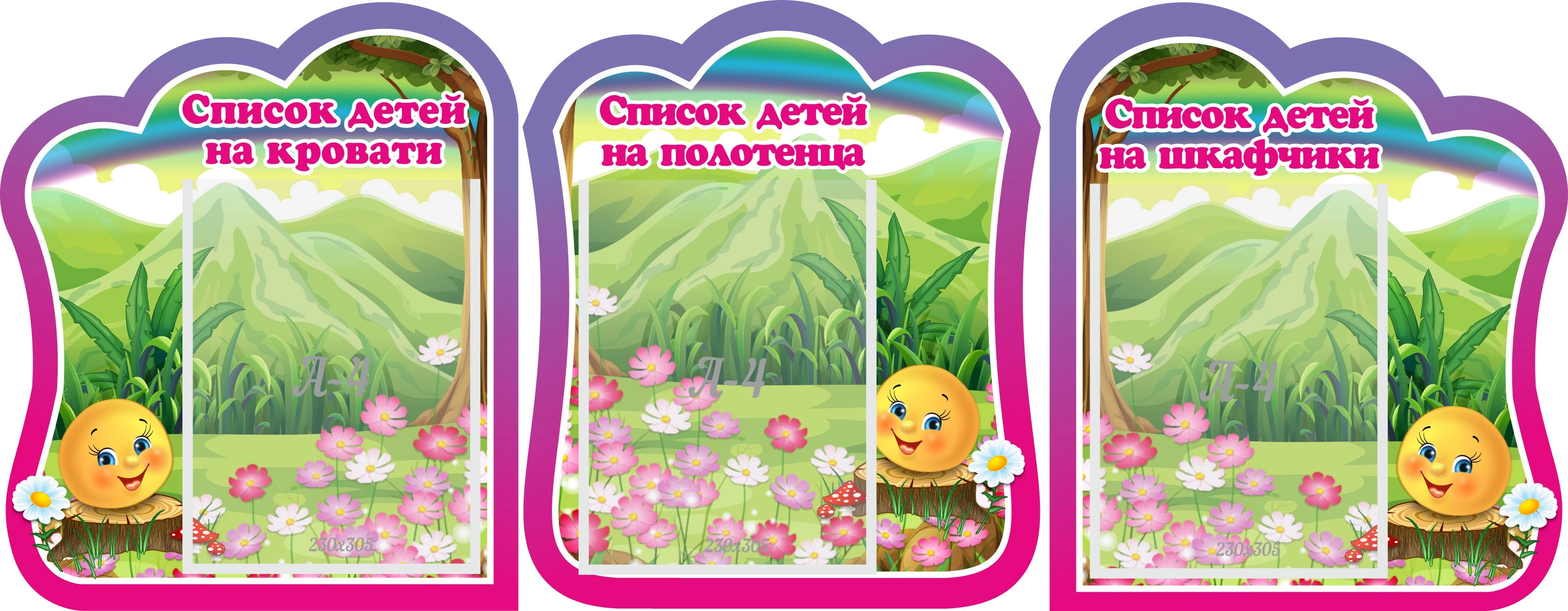 Комплект стендов "Списки детей на кровати Список детей на полотенца Списки детей на шкафчики" №4 арт. ДС-0690