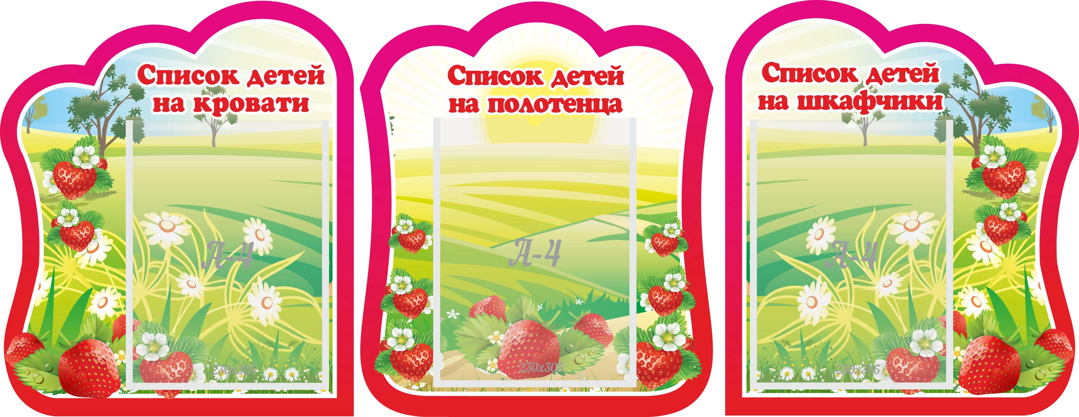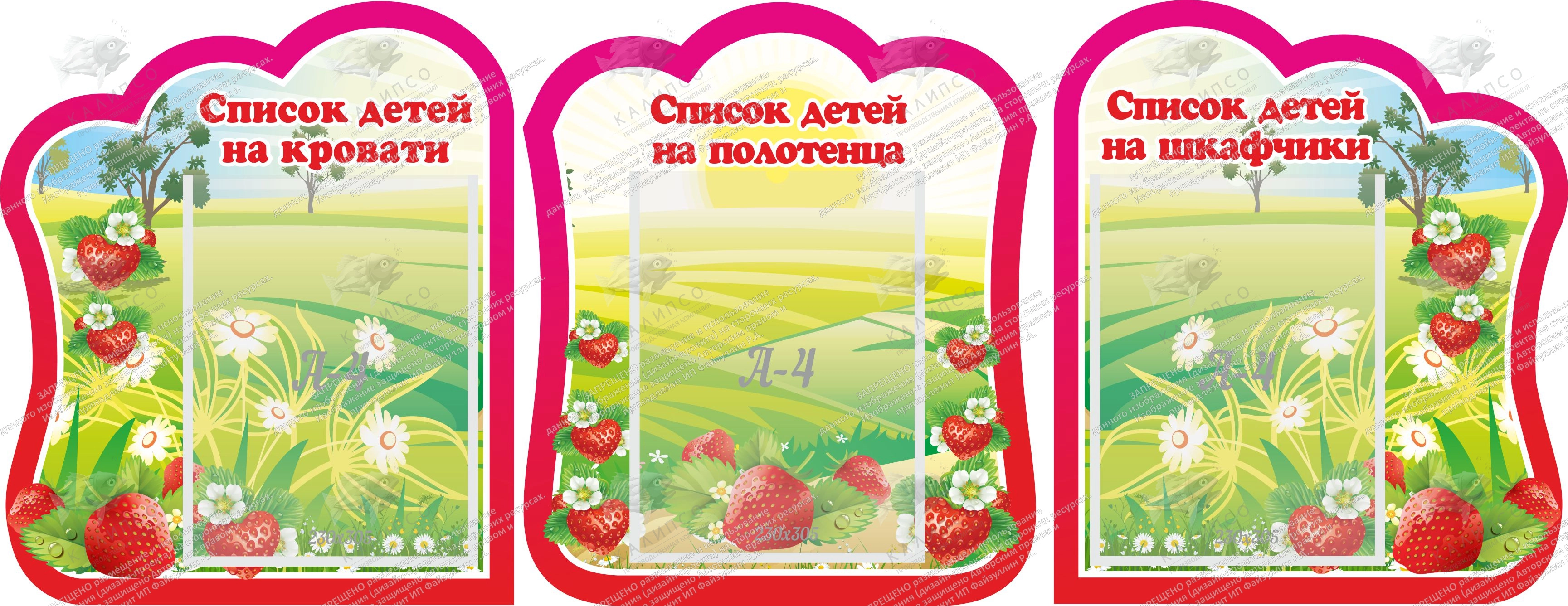 Комплект стендов "Списки детей на кровати Список детей на полотенца Списки детей на шкафчики" №3 арт. ДС-0689