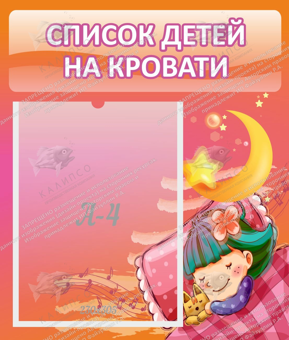 Стенд "Список детей на кровати" №6 арт. ДС-0606