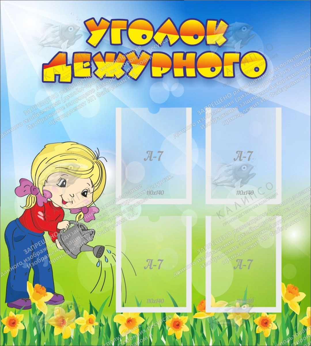 Стенд "Уголок дежурного" с 4 карманами арт. ДС-0463