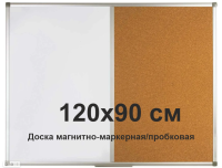 Поверхность - магнитно-маркерная лаковая и натуральная пробка. Информацию можно разместить с помощью силовых кнопок, флажков и булавок, а также маркеров сухого стирания и магнитов. Рамка и стык из алюминиевого профиля. В комплекте полочка 21 см. для маркера и монтажный крепеж.