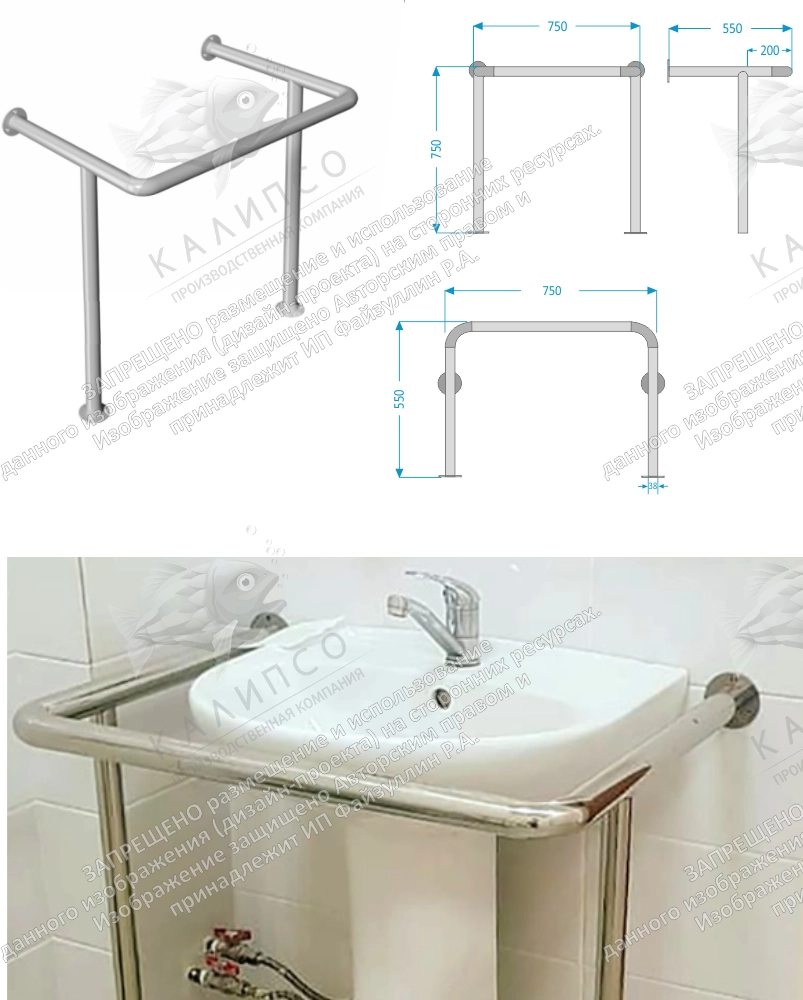 Поручень для раковины с опорой к стене и полу неразборный арт. 84016