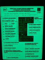 Все обозначения и текст наносятся кириллицей и дублируются шрифтом Брайля, все элементы выпуклые над плоскостью не менее 0,7 мм. Требования для разработки мнемосхемы: Схема расположения помещений в здании (как правило - это целый этаж) с номерами и названиями помещений (доступных для посетителей) с указанием путей эвакуации в случае чрезвычайной ситуации. Необходимо отметить на схеме доступные для инвалидов помещения: гардеробы, раздевалки, лифты, туалеты, столовая. Устанавливается при входе в учреждение с правой стороны на расстоянии от 3 до 5 метров от входа, на высоте 1,2 м. от пола. Рекомендуется рядом с мнемосхемой располагать копию плана эвакуации. Стандартные размеры изделия составляют 321х411мм, 610х470мм, 800х630мм и 905х1150мм. По желанию заказчика мнемосхема может быть изготовлена под любые размеры и из различных материалов.