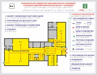 Все обозначения и текст наносятся кириллицей и дублируются шрифтом Брайля, все элементы выпуклые над плоскостью не менее 0,7 мм. Требования для разработки мнемосхемы: Схема расположения помещений в здании (как правило - это целый этаж) с номерами и названиями помещений (доступных для посетителей) с указанием путей эвакуации в случае чрезвычайной ситуации. Необходимо отметить на схеме доступные для инвалидов помещения: гардеробы, раздевалки, лифты, туалеты, столовая. Устанавливается при входе в учреждение внутри здания с правой стороны на расстоянии от 3 до 5 метров от входа, на высоте 1,2 м. от пола. Рекомендуется рядом с мнемосхемой располагать копию плана эвакуации. Стандартные размеры изделия составляют 321х411мм, 610х470мм, 800х630мм и 905х1150мм, размер мнемосхемы выбирается с учетом объема размещаемой на ней информации. По желанию заказчика мнемосхема может быть изготовлена из различных материалов.