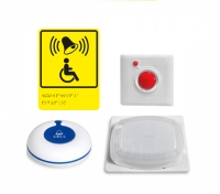 Комплект включает в себя: влагозащищенную кнопку вызова Y-SW2, кнопку отмены Y-A1-BC, коридорную лампу Y-700 и табличку для инвалидов.