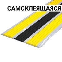 Накладка на ступень в AL профиле шириной 100мм, с тремя контрастными вставками шириной 29мм желтая,самоклеящаяся, арт. ТБ-98