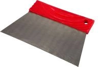 Зубчатый шпатель предназначен для равномерного нанесения жидкого клеевого состава на горизонтальную поверхность, для распределения тонкого слоя клея по подготовленной площади для приклеивания облицовочных или отделочных материалов. Мелкие зубчики шпателя необходимы для работы с разжиженными составами низкой вязкости. Удобная прочная ручка позволяет сохранять руки в чистоте и увеличивает эффективность работы, расширяющаяся рабочая часть шпателя обеспечивает быстрое нанесение и разравнивание клея по поверхности.