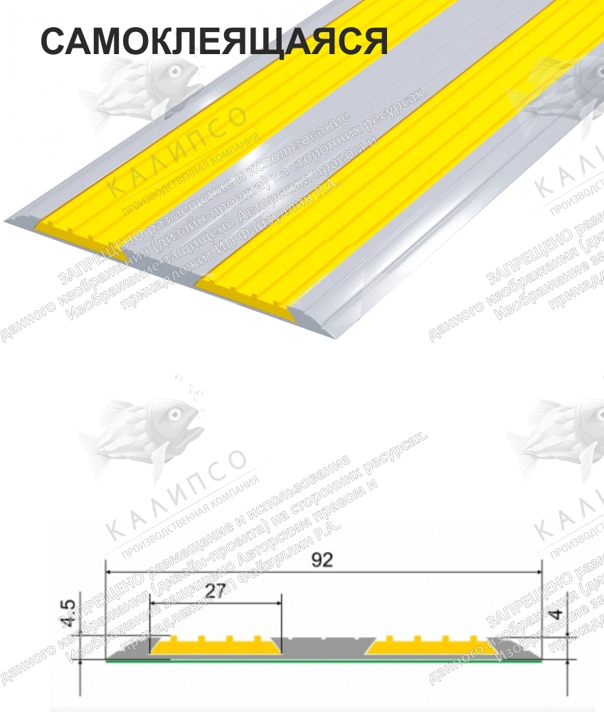 Накладка на ступень в алюминиевом профиле Самоклеящаяся арт. 10190-У-СК