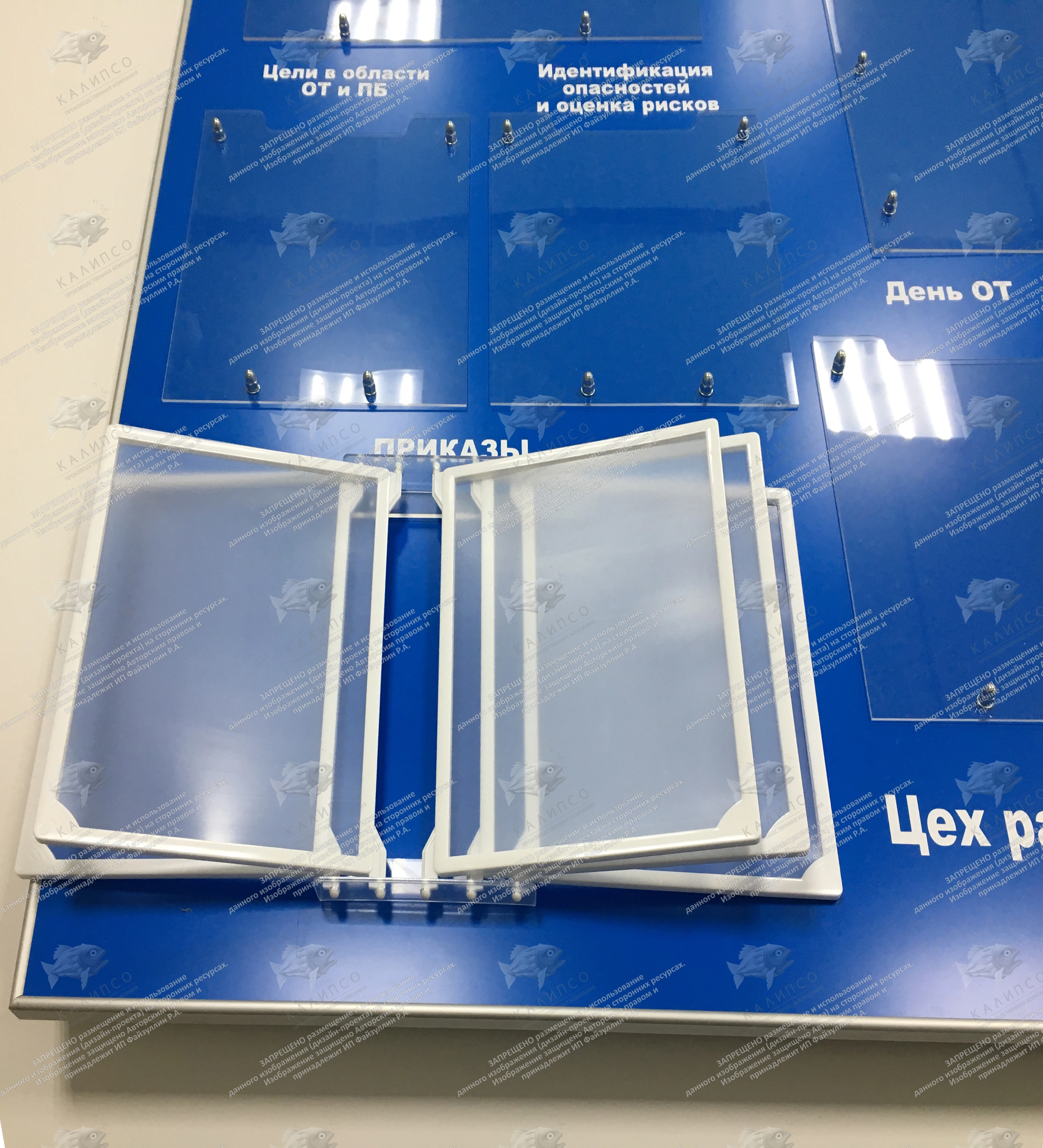 10 карманов А4, 1 карман - А3, 1 карман - А2, перекидная система А4 на 10 рамок, ящик для анкет из оргстекла
