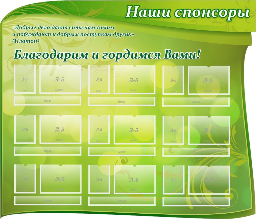 Стенд "Наши спонсоры" с 9 карманами, резной арт. ШК-02166