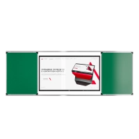 Не знаете как эффективно использовать образовательное пространство и, при этом проводить уроки с использованием последних инновационных технологий? Интерактивный комплекс с рельсовой системой станет прекрасным решением. Данная модель позволяет совместить работу со школьной доской и интерактивной. Обучающийся или преподаватель может не только делать записи на доске мелом или маркером, но и сопровождать свое объяснение включенной презентацией на интерактивной доске. При необходимости, благодаря рельсовой системе, классическая доска может закрыть интерактивный дисплей.