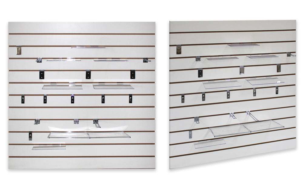 Основа:щит ламинированный с пластмассовыми вставками – 1 шт., полки пластмассовые 250*100 мм – 6 шт., полки пластмассовые с упором – 2 шт., крюк L = 200 мм – 1 шт., крюки L = 100 мм – 4 шт., крючок универсальный (ОС)- 6 шт., подвески металлические для магнитных держателей – 4 шт., кнопки магнитные – 8 шт., комплект для крепления, дюбели – 4 шт.)