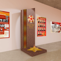 стелла - композит 3 мм, металлокаркас, буквы-оргстекло 3 мм с пленкой оракал, звезда - ПВХ 10 мм с наклейкой. Подиум и звезда выполнены из композита алюминия, в центре звезды светодиодная имитация огня.