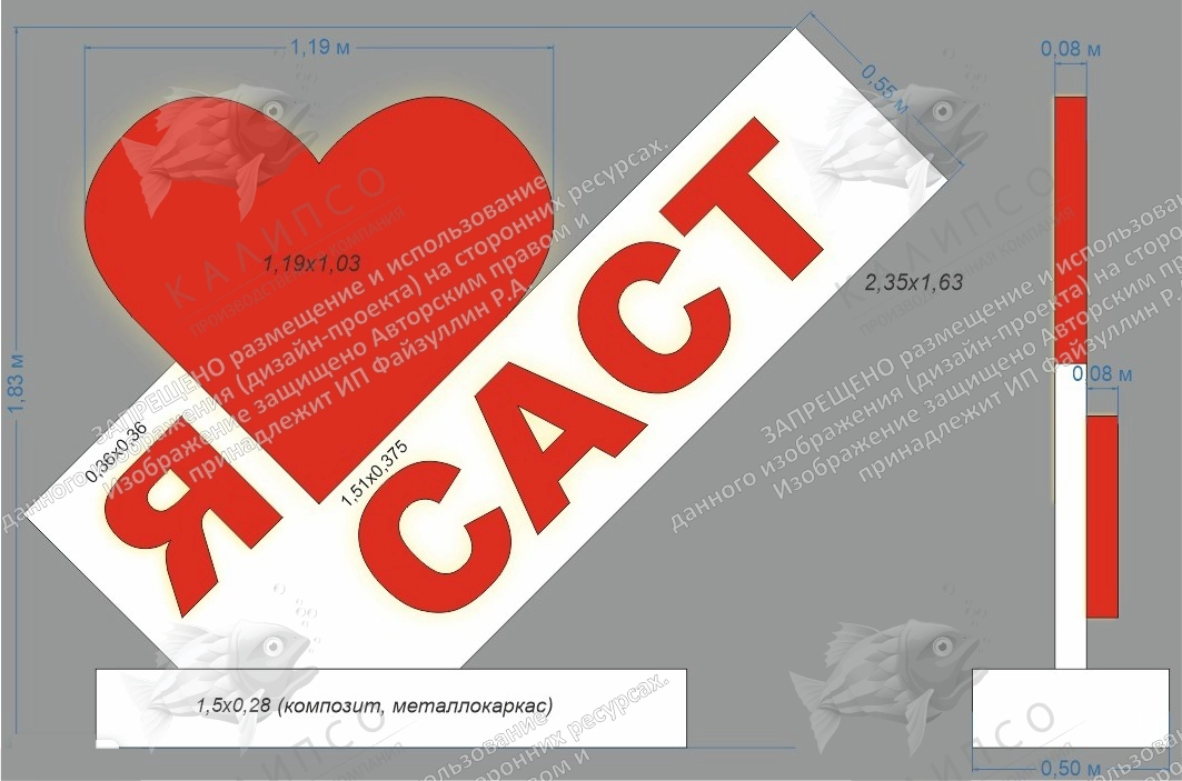 Стела с подсветкой "Я люблю САСТ". Дизайн по вашим материалам арт. СТ-0106