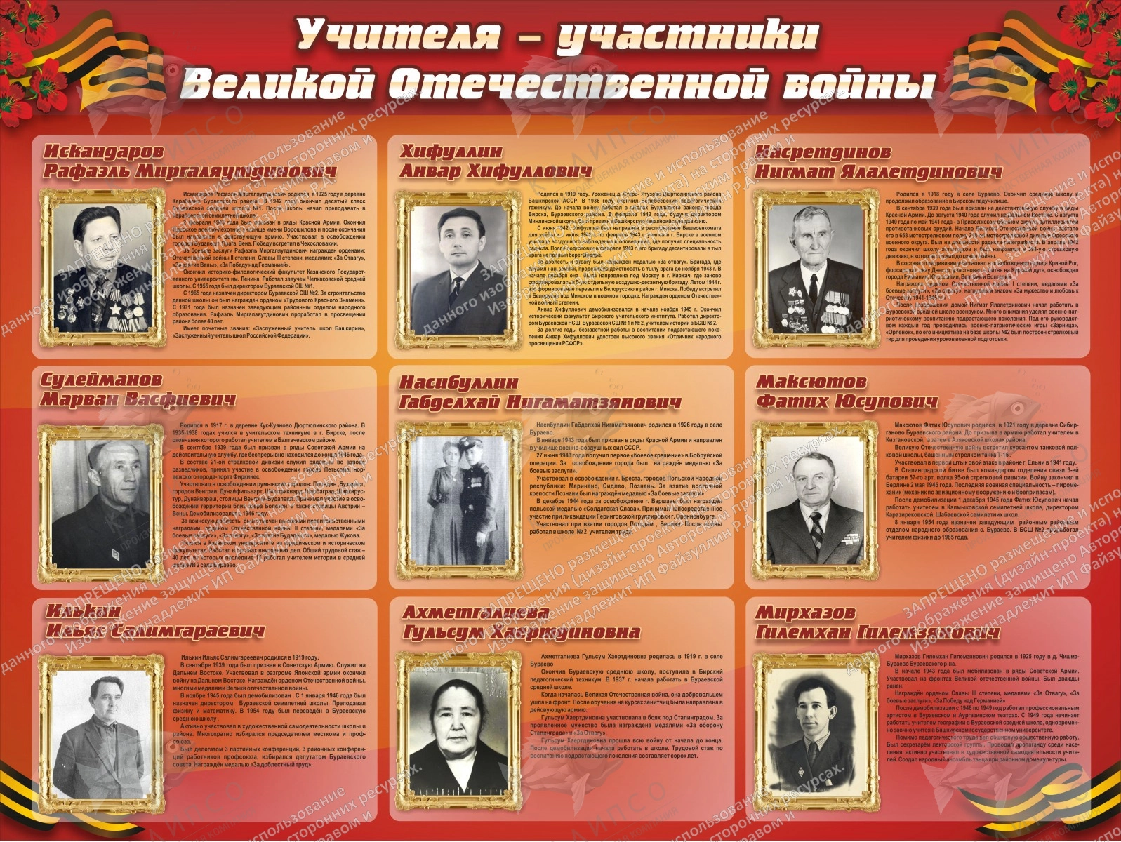 Стенд "Учителя-участники Великой Отечественной Войны" (дизайн по вашим материалам) арт. ДШК-2610