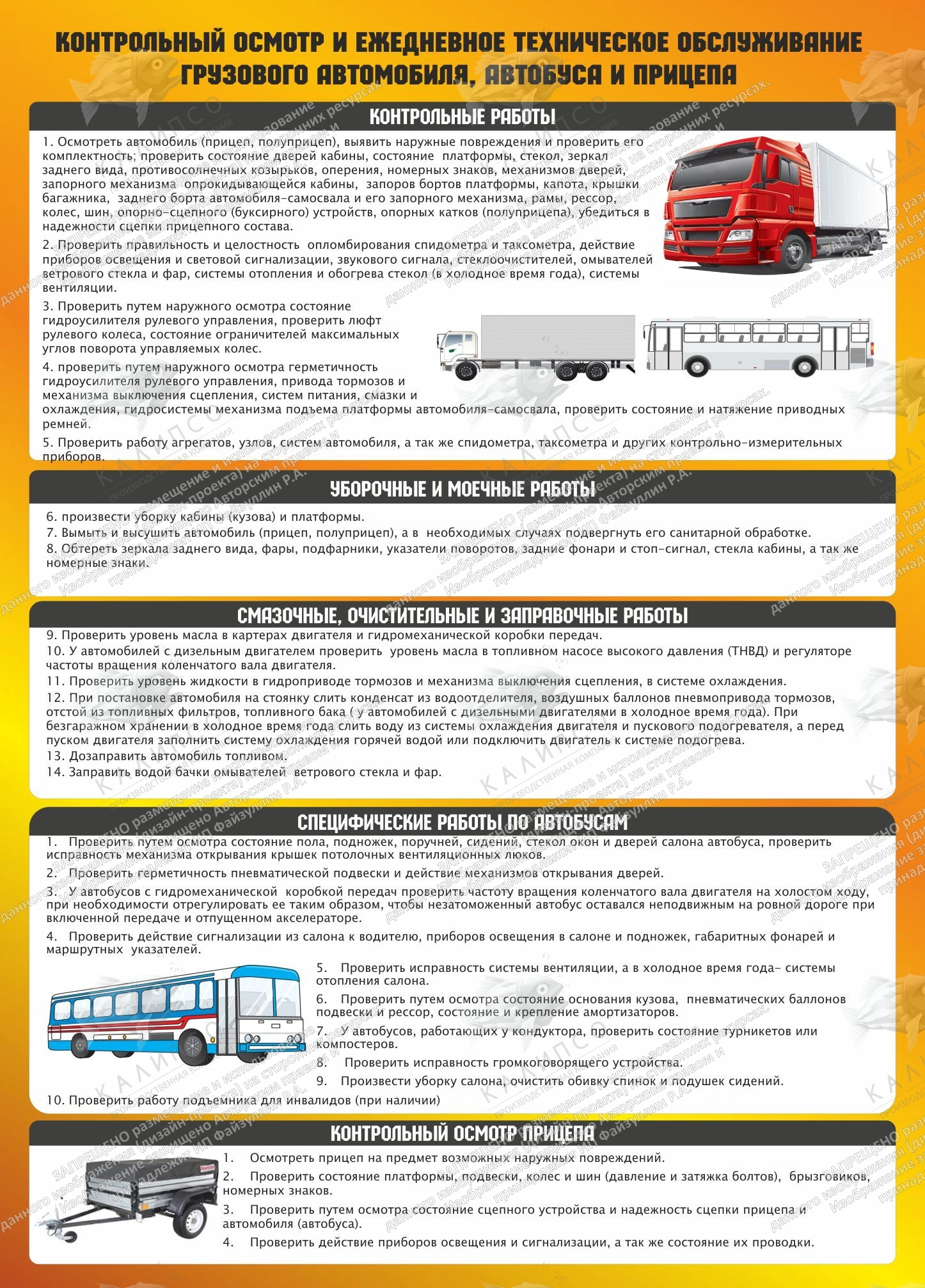 Стенд "Контрольный осмотр и и ежедневное техническое обслуживание грузового автомобиля автобуса и прицепа" арт. ШК-3520