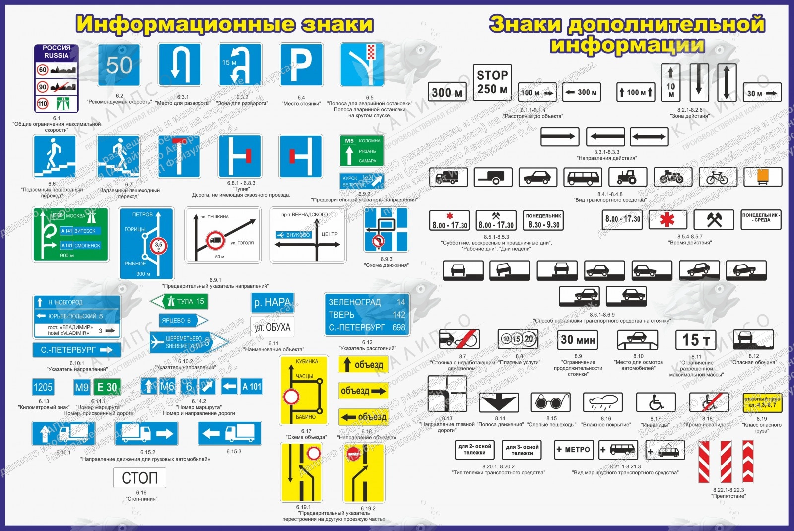 В каждой автошколе изучению знаков уделяется едва ли не 50 % всего учебного курса. Как известно, зрительная память самая крепкая, поэтому такой стенд необходим в каждой автошколе. Благодаря такому стенду преподаватели будут наглядно показывать знаки, и объяснять их значение на занятиях. Стенд достаточно большого размера, поэтому его можно использовать в больших аудиториях. Также этот стенд достаточно информативный. Он охватывает большую часть самых важных информационных знаков и знаков дополнительной информации, которая обычно используется как дополнительная, но, тем не менее, без нее не обойтись.