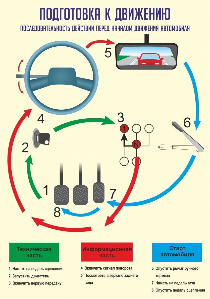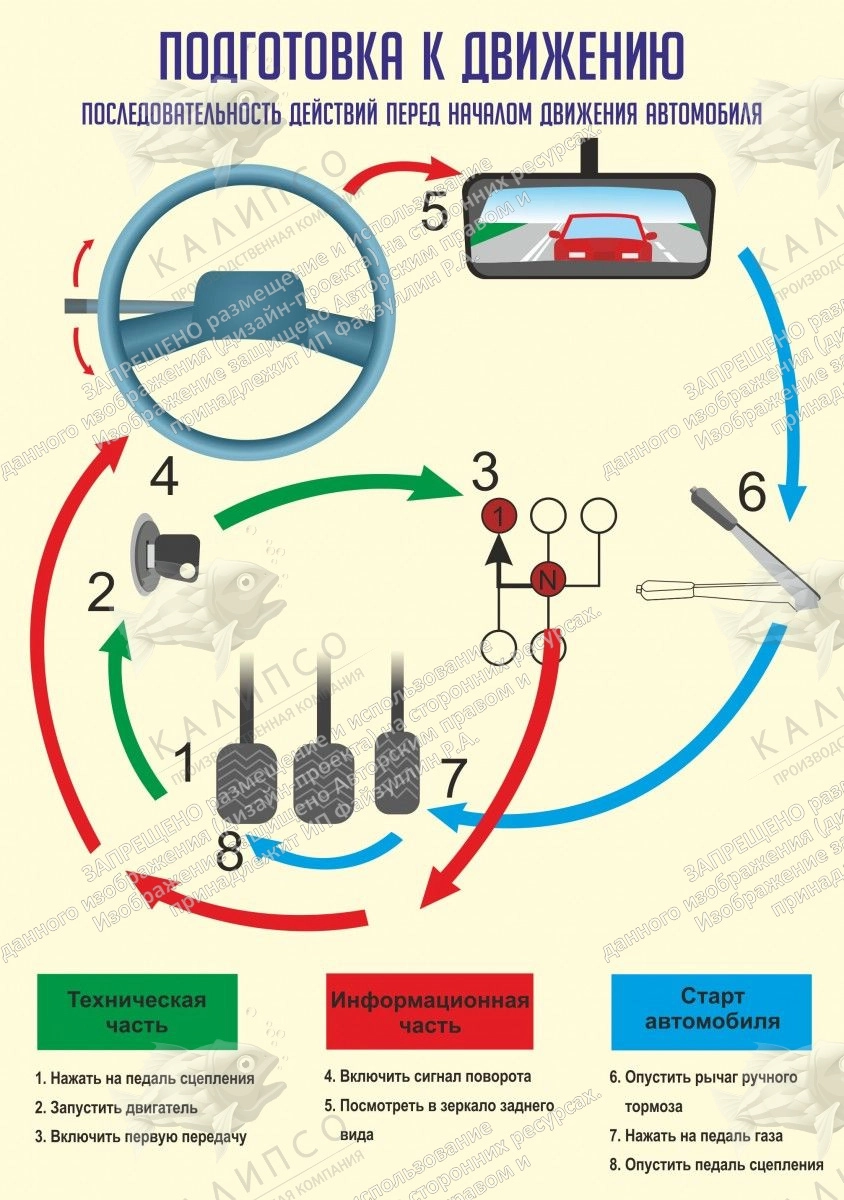 Очень часто ученик автошколы, сев за руль забывает все, что учил на теоретических занятиях. И начинается масса вопросов к учителю. Конечно, на 100% этот стенд проблем не решит. Потому что все равно останется несколько человек, у которых дрожь в коленках и частое биения сердца от волнения заставит забыть даже о собственном имени. Но как говорят ученые, зрительная память одна из самых длительных. Поэтому такой стенд должен быть в арсенале каждой автошколы. На нем схематично и доступно показаны все действия, которые должен сделать водитель, перед тем как тронуться с места. Такой стенд можно порекомендовать всем забывчивым водителям.