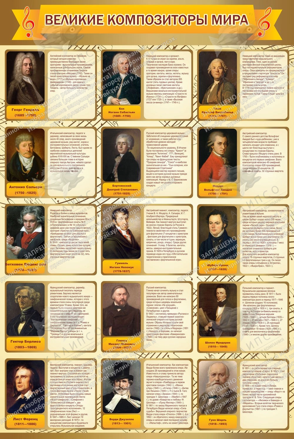 Стенд "Великие композиторы мира" 0.8x1.2 арт. МШ-0125