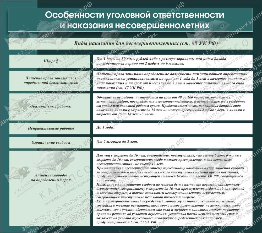 Стенд "Особенности уголовной ответственности и наказания несовершеннолетних" арт. ВУ-0513