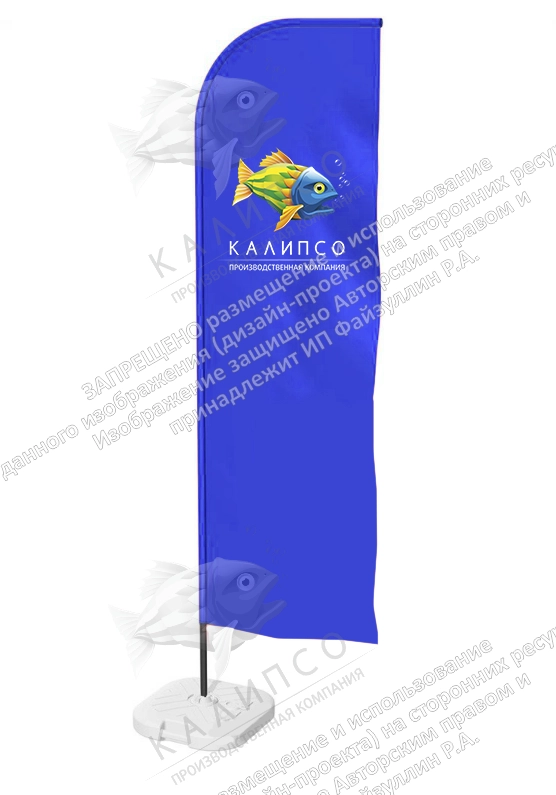 Ткань - полиэфирный шелк, один слой ткани, печать с одной стороны. Флагшток 2,5 м. Основание - наливное.