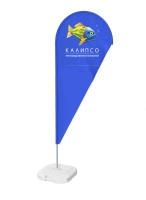 Ткань - полиэфирный шелк, один слой ткани, печать с одной стороны. Флагшток Капля 2,1м (серый цвет, стенка 2мм). Основание - наливное.