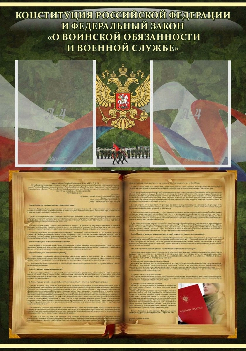 Стенд "Конституция РФ и Федеральный закон О воинской обязанности и военной службе" арт. ШК-1646