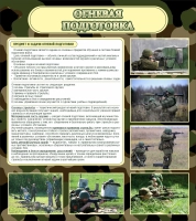 На стенде «Огневая подготовка» предоставлены ознакомительная информация о предмете и задачах огневой подготовки. Благодаря этому стенду ученики и курсанты военных заведений могут ознакомится с основами стрельбы, материальной частью оружия, целью метания гранат и всевозможной информации, относящийся к подготовке. Материал стенда - ПВХ, который позволяет его использовать при любых температурах. Помимо текста присутствуют цветные изображения в качестве примера. Стенд удобен тем, что его можно крепить на обычный двухсторонний скотч или другие способы, все зависит от стены.
