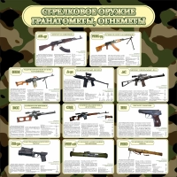 На стенде «Стрелковое оружие гранатометы, огнеметы» предоставлены виды оружия, информация о них и способы их применения. Стенд прекрасно ознакомит учеников и курсантов военных заведений с основным оружием, используемым в ВС РФ. На стенде показаны качественные изображения с различным видом вооружения, историей происхождении и техническими характеристиками. Материал стенда является экологически чистый ПВХ, который позволяет его использовать в любом помещении. Классификация стенда относится к легко монтируемым, варианты крепления применяются разнообразные начиная двусторонним скотчем и заканчивая монтажными дюбелями.