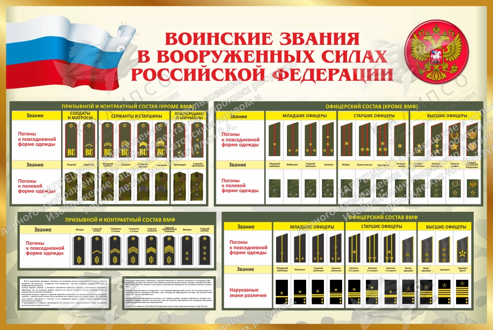 Стенд "Воинские звания в вооруженных силах Российской Федерации" арт. ШК-16109