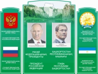 В каждой башкирской школе должен висеть такой стенд с символикой РФ и РБ. Это важно не только для поднятия патриотического духа учителей и учащихся, но и о напоминании о великой стране и республике, в которой они живут.