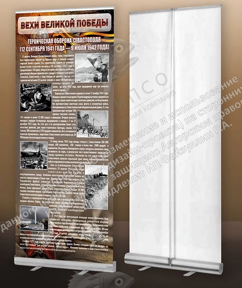 Стенд мобильный ролл-ап "Оборона Севастополя" арт. ШК-2628