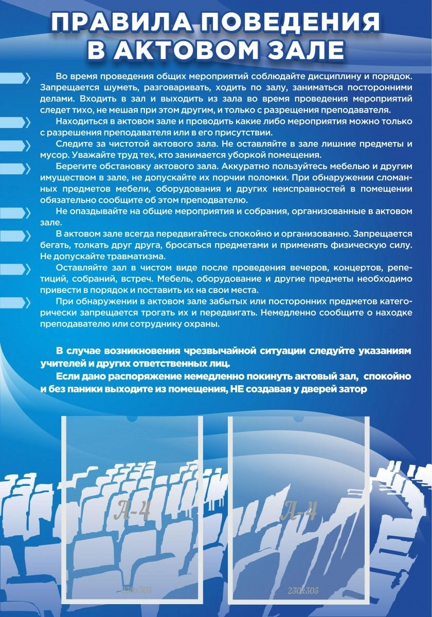 Стенд "Правила поведения в актовом зале №2" арт. ШК-2402