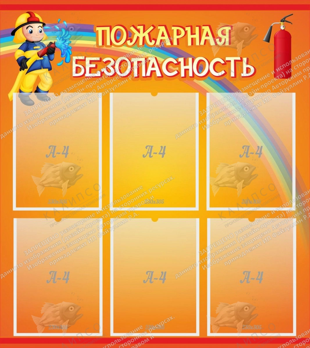 Стенд "Пожарная безопасность" с 6 карманами арт. ДС-01164