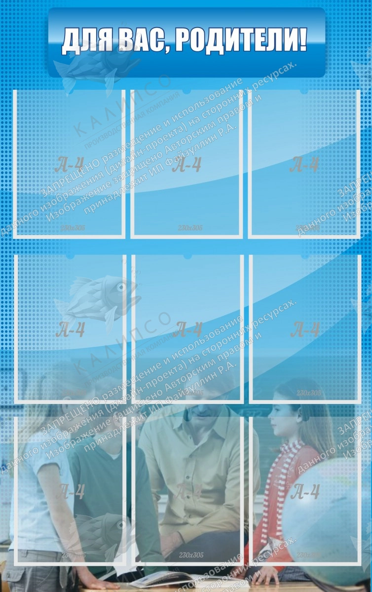 Стенд "Для Вас родители!" с 9 карманами арт. ШК-0280