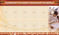 Одним из наиболее важных и ответственных периодов в школе, как для учеников, так и для учителей можно считать сдачу Единого государственного экзамена. Для информации, касающейся ЕГЭ теперь можно выделить отдельный стенд, чтобы не отвечать постоянно на вечные вопросы школьников о времени его проведения или о результатах. Стенд ЕГЭ имеет горизонтальную форму, и пастельную цветовую гамму с небольшим цветочным узором по краям названия стенда. Для разного рода информации имеются 10 карманов для документов формата А4. Удобная форма карманов позволит быстро заменить необходимый лист на новый.