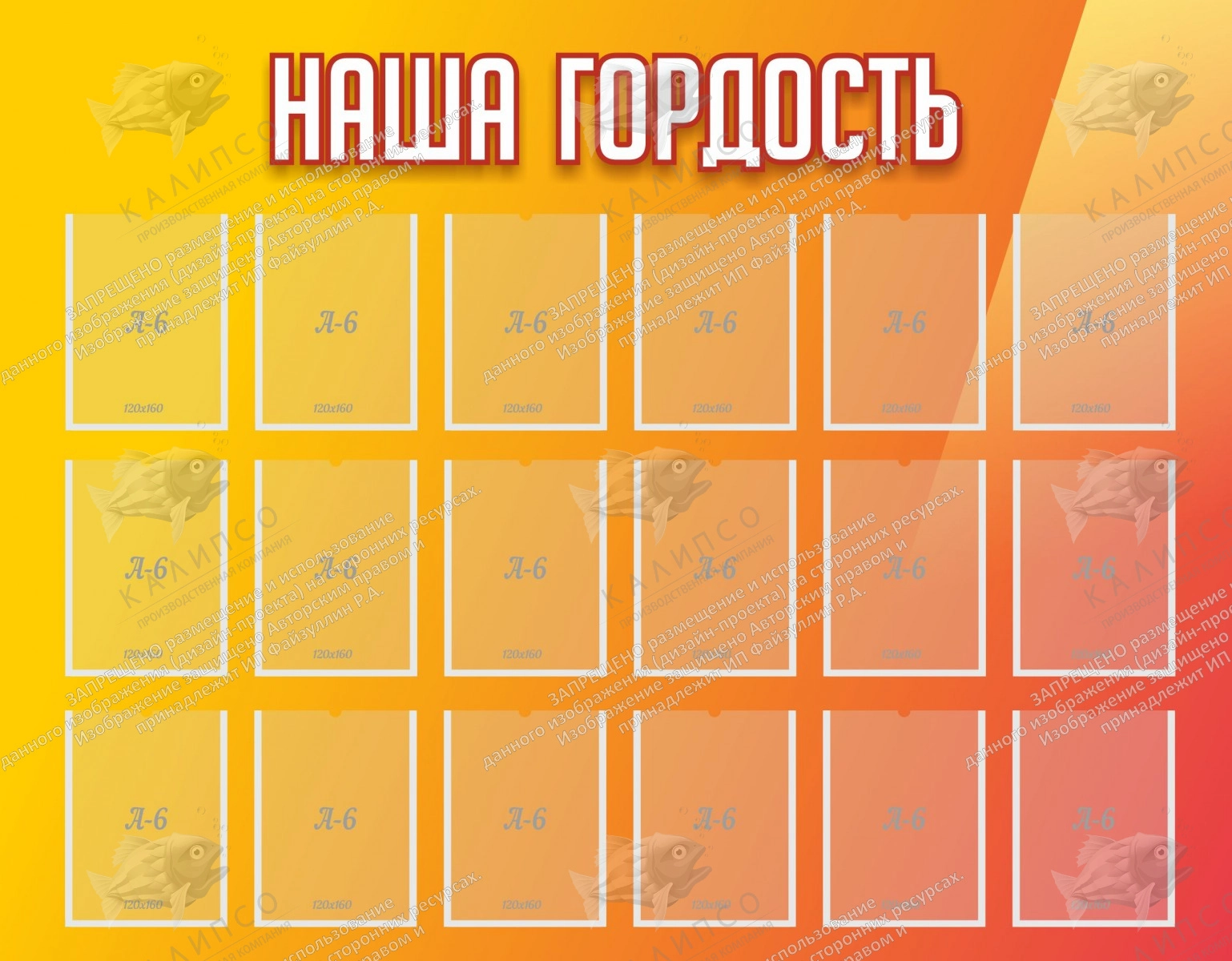 Для мотивации работников можно воспользоваться не только премией, но и визуальными эффектами. Вывешивание стенда «Наша гордость» в этом поможет. Здесь можно разместить до восемнадцати личностей. Такая вывеска идеально подходит для офисов, учебных заведений, заводах. Многим сотрудникам будет приятно увидеть свою фотографию на стенде. Табличка очень яркого веселого цвета сделана из тонкого пластика ПВХ. Такой цвет получается из-за высококачественной печати, краска используется водонепроницаемая. Также стенд имеет прозрачное защитное покрытие в виде ламинирующей пленки.