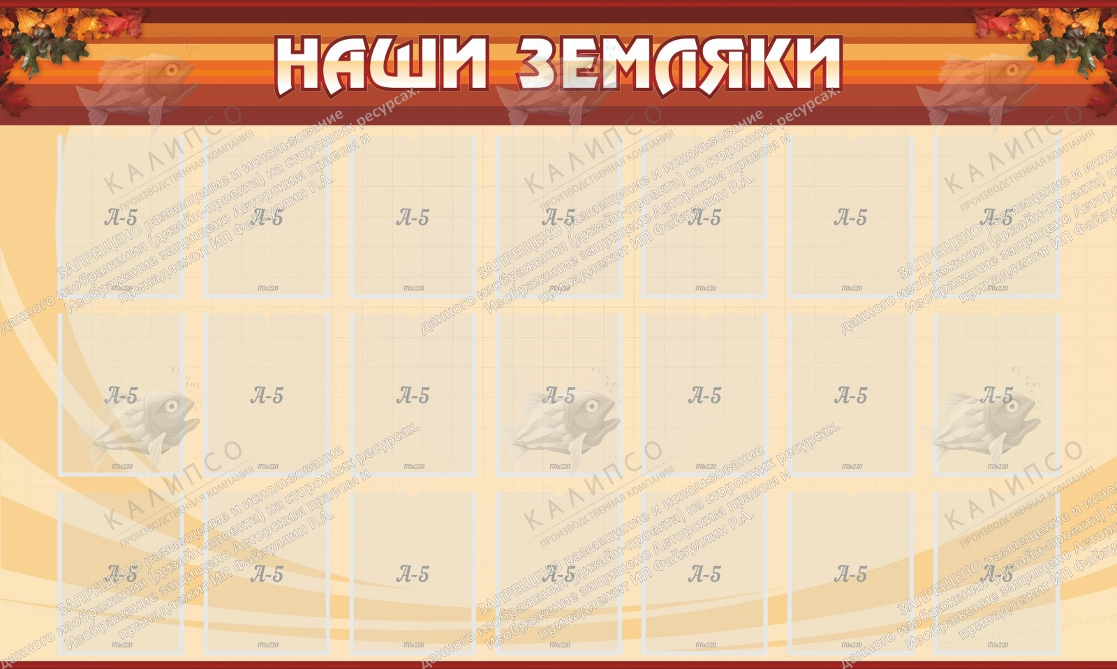 На стенде «наши земляки» можно разместить фотографии известных личностей, которые связаны с этой школой. Это могут быть выдающиеся деятели, которые учились в этой школе или известные люди, которые помогали в ее формировании. Такой стенд станет достопримечательностью и привернет внимание всех посещающих школу. На стенде в три ряда располагаются 21 карман, для вертикальных фотографий, чье качество защитит ламинирующая прозрачная пленка. Данная модель стенда имеет 1,5 метра в ширину, и будет хорошо смотреться в холле школы. Не броские цвета позволят стенду гармонировать с любым интерьером, а также с другими стендами.